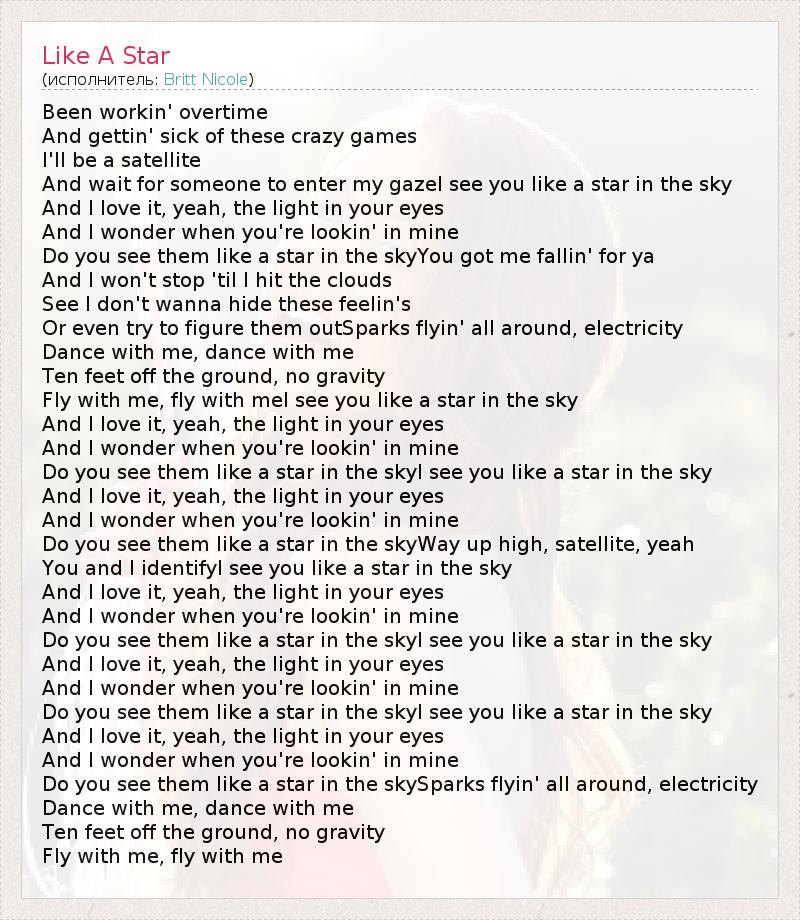 А как ты думаешь, о чем песня "Like A Star" ?