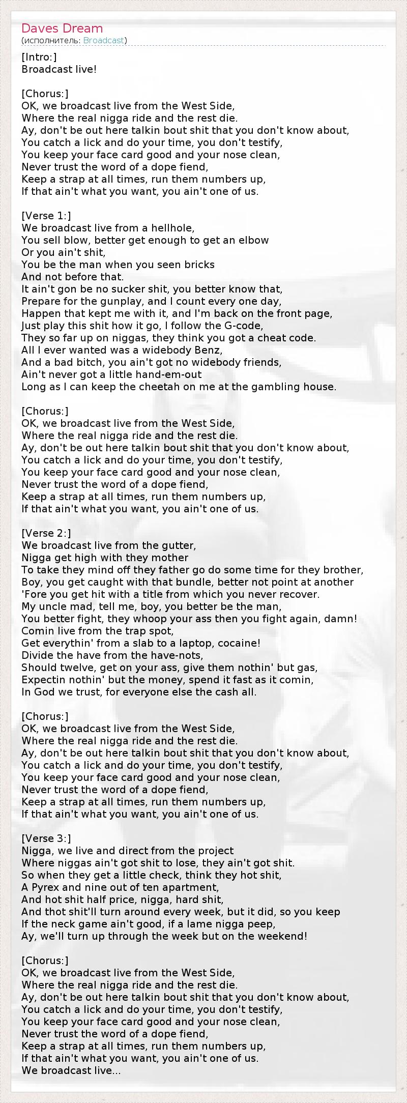 А как ты думаешь, о чем песня "Daves Dream" ?