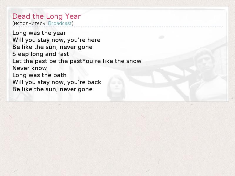А как ты думаешь, о чем песня "Dead the Long Year" ?