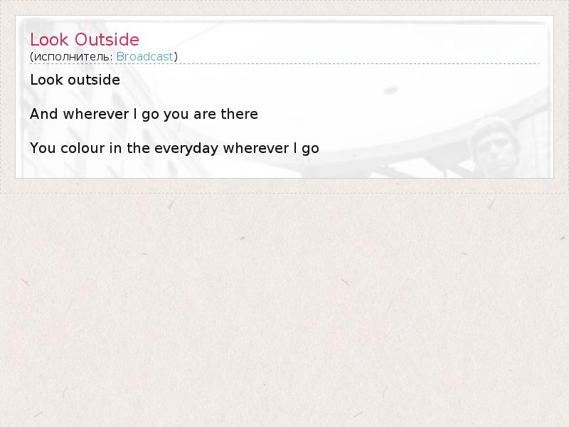 Это интересно:В Италии, где морские ветры гулким эхом отражаются от древних стен архитектурных памятников, и, унося за собой на дно морское крупицы камня, порождают в головах композиторов музыку космических глубин, именно там кроется тайна волшебства, творимого неземными аквалангистами - бирмингемской группой Broadcast. Когда-то целый квинтет, а затем дуэт, Broadcast очень любили творчество различных кино-композиторов,... продолжение