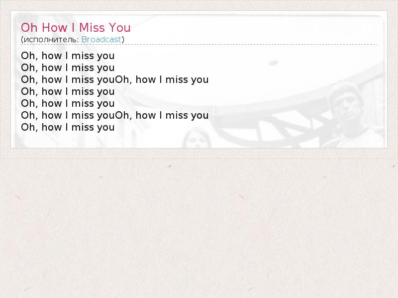 Oh, how I miss youOh, how I miss you