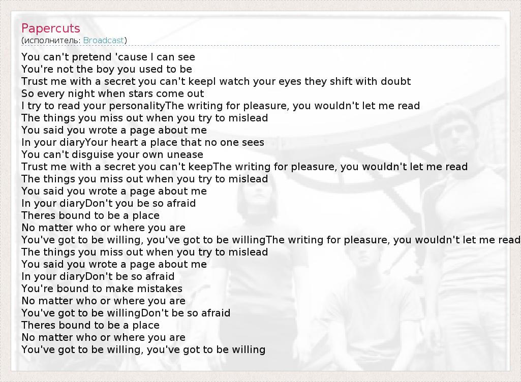 Trust me with a secret you can't keepThe writing for pleasure, you wouldn't let me read