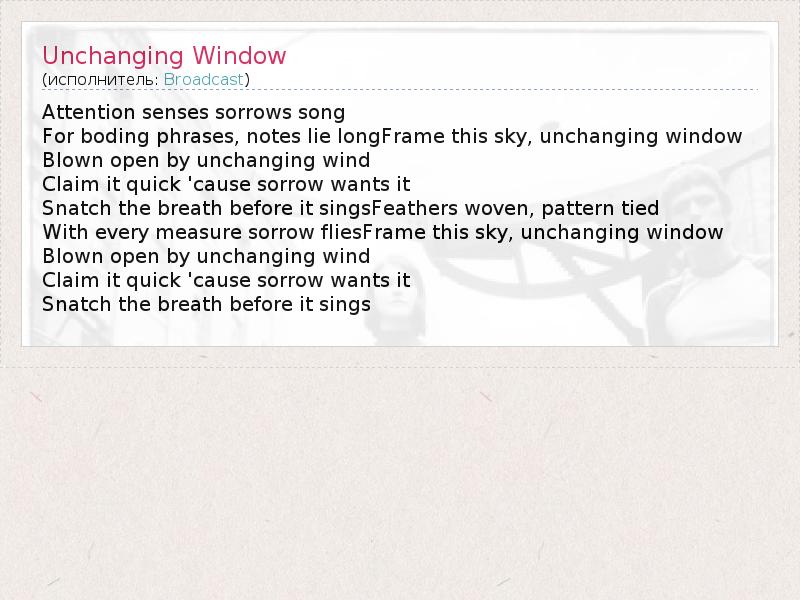 А как ты думаешь, о чем песня "Unchanging Window" ?