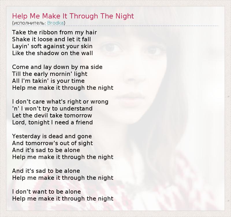 А как ты думаешь, о чем песня "Help Me Make It Through The Night" ?