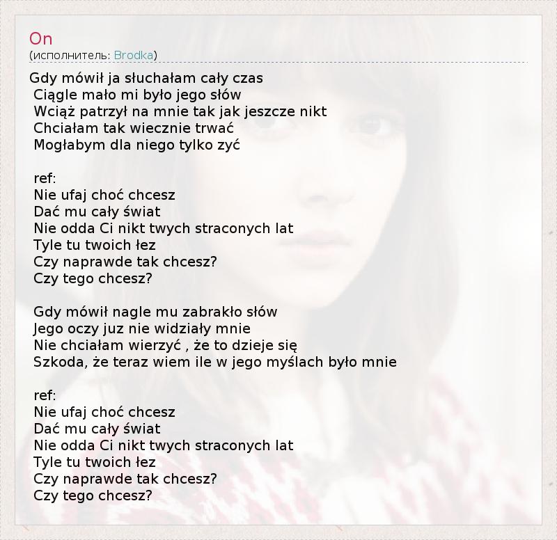 Это интересно:Моника Бродка, исполнительница песен на родном языке, родилась на юге Польши в небольшой деревеньке седьмого февраля 1987 года. Ее сингл "Znam Cię na pamięć" (русск. "Я знаю тебя наизусть") дебютировал на польском MTV и занял пятое место. Не так давно Моника принимала участие в озвучке польской версии "Черепашек-ниндзя".