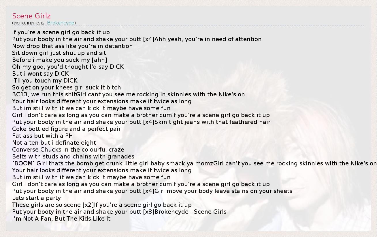 Put your booty in the air and shake your butt [x8]Brokencyde - Scene Girls