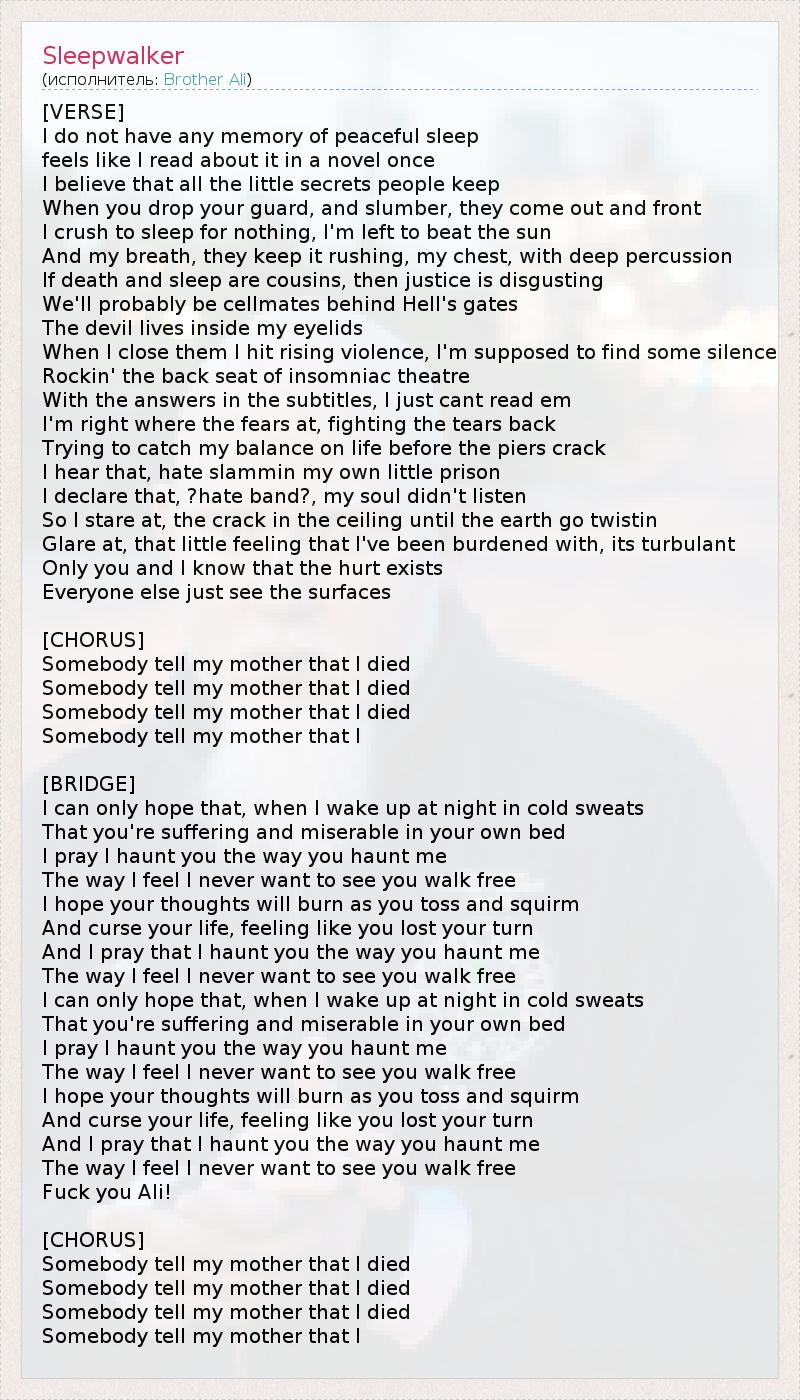 А как ты думаешь, о чем песня "Sleepwalker" ?