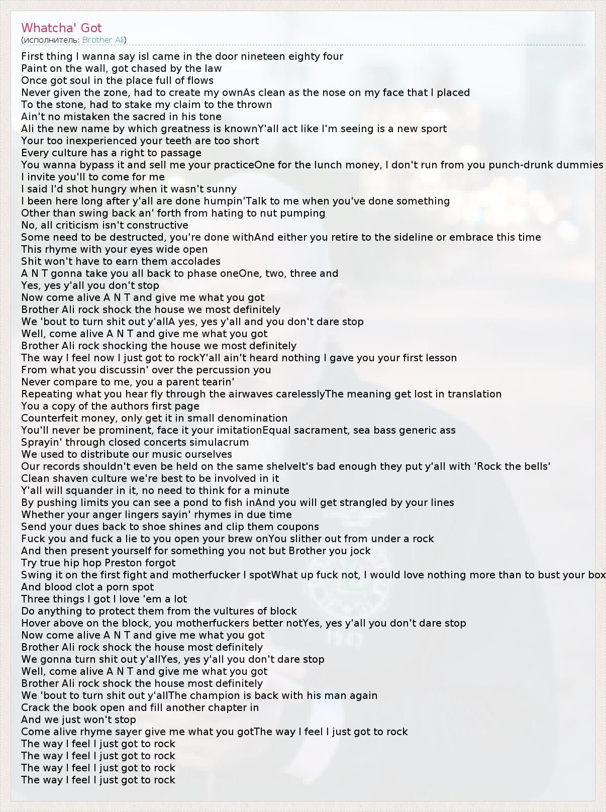 А как ты думаешь, о чем песня "Whatcha' Got" ?