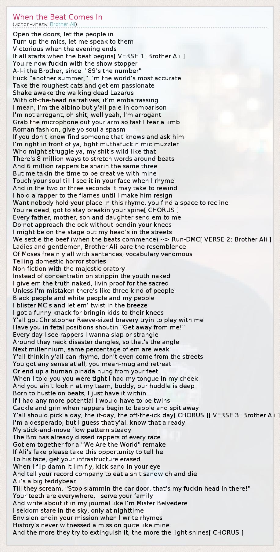 We settle the beef (when the beats commence) --> Run-DMC[ VERSE 2: Brother Ali ]