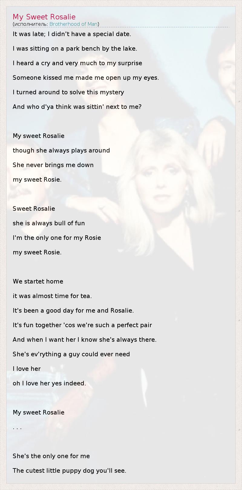 А как ты думаешь, о чем песня "My Sweet Rosalie" ?