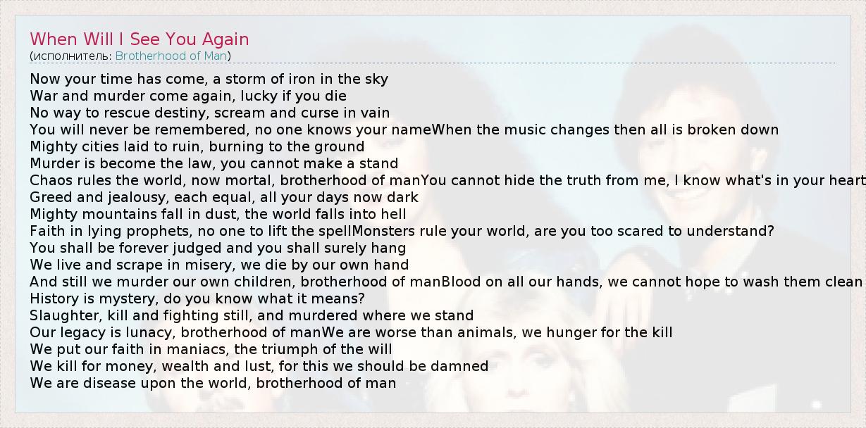 А как ты думаешь, о чем песня "When Will I See You Again" ?