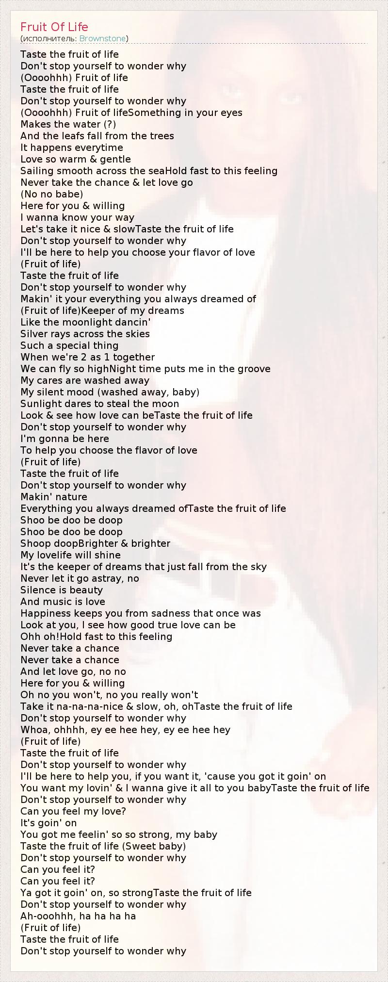 А как ты думаешь, о чем песня "Fruit Of Life" ?