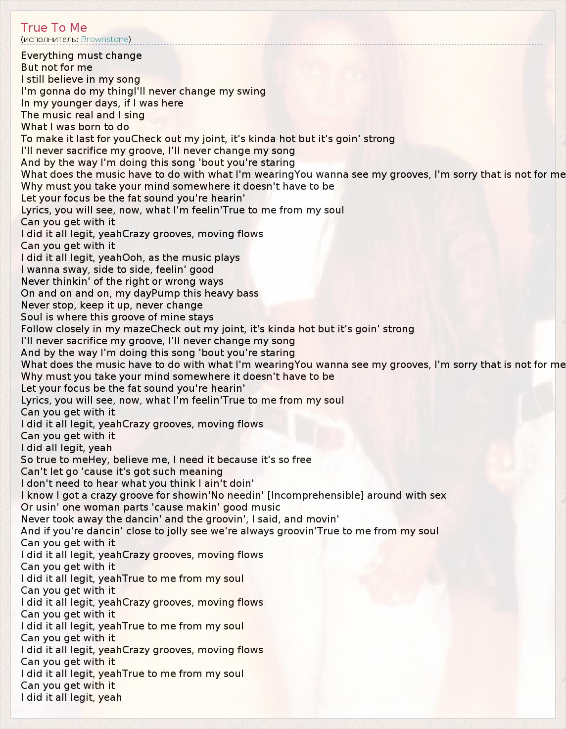 Lyrics, you will see, now, what I'm feelin'True to me from my soul