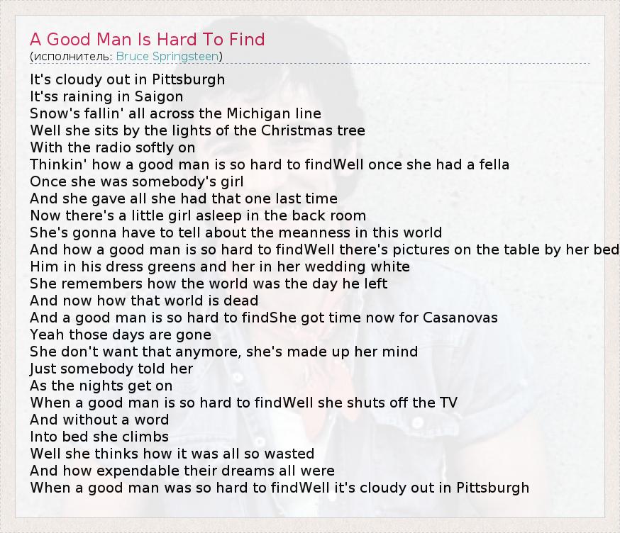 А как ты думаешь, о чем песня "A Good Man Is Hard To Find" ?