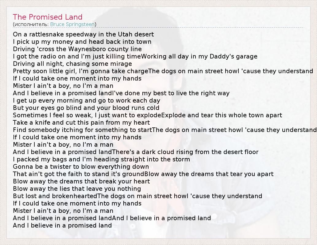А как ты думаешь, о чем песня "The Promised Land" ?