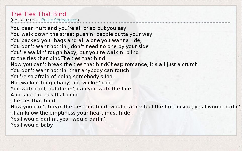А как ты думаешь, о чем песня "The Ties That Bind" ?