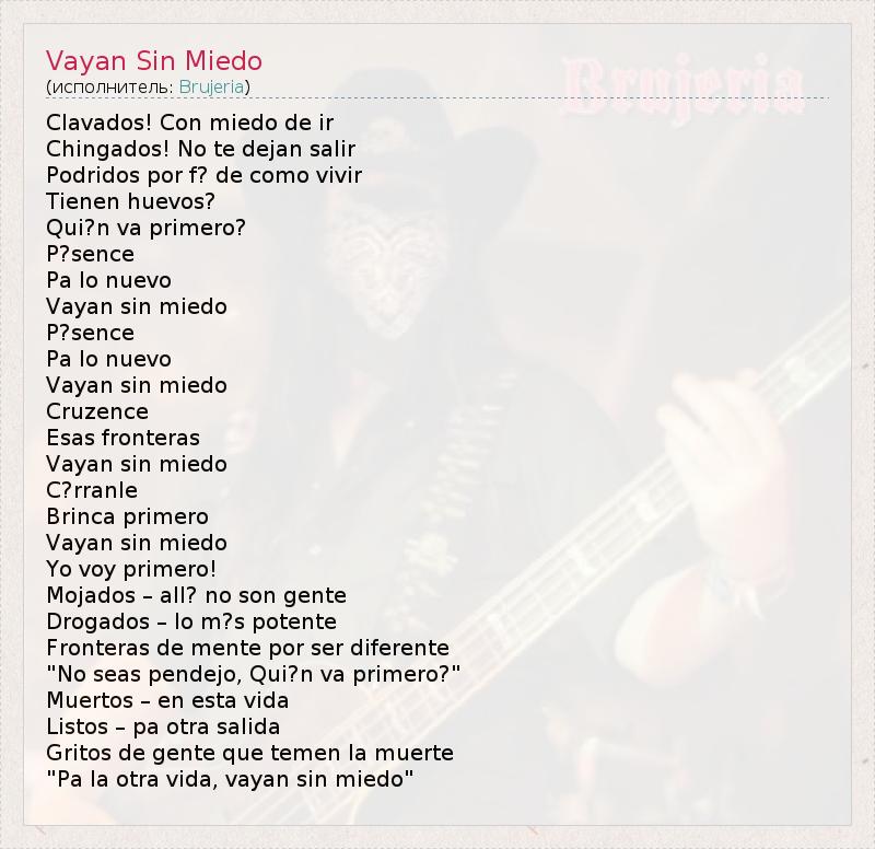 А как ты думаешь, о чем песня "Vayan Sin Miedo" ?