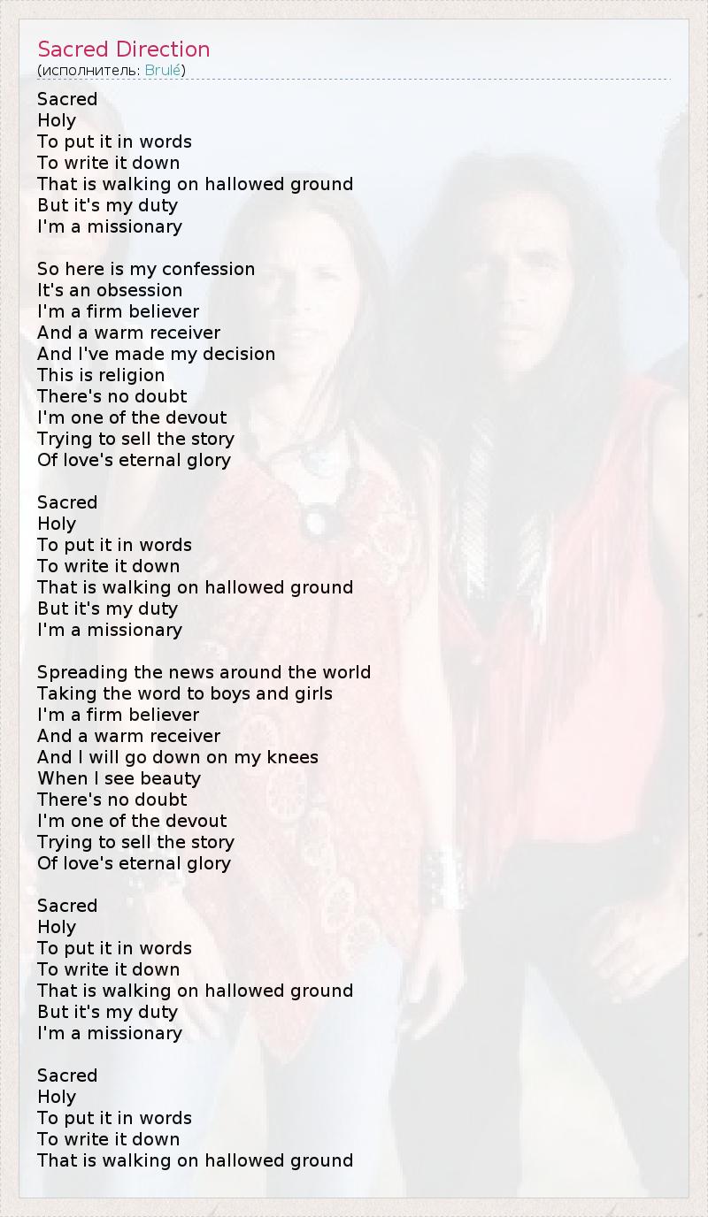 А как ты думаешь, о чем песня "Sacred Direction" ?