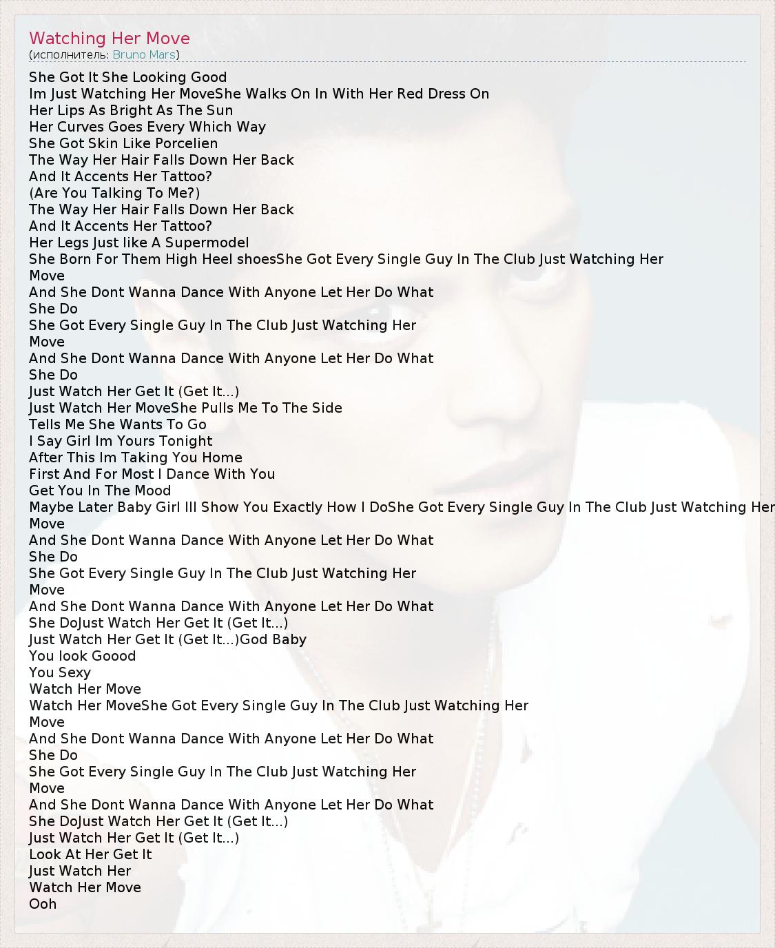 А как ты думаешь, о чем песня "Watching Her Move" ?