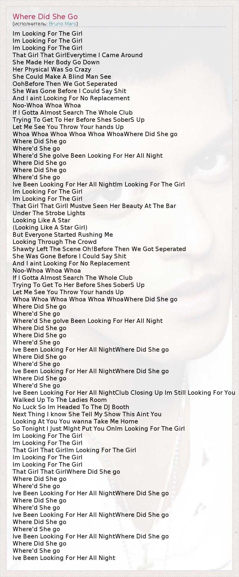 Ive Been Looking For Her All NightIm Looking For The Girl