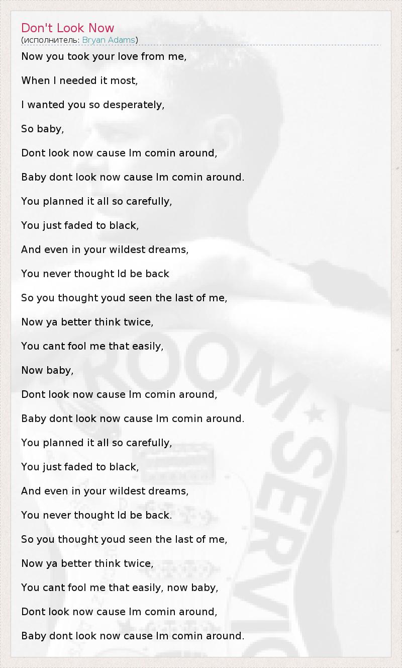 А как ты думаешь, о чем песня "Don't Look Now" ?