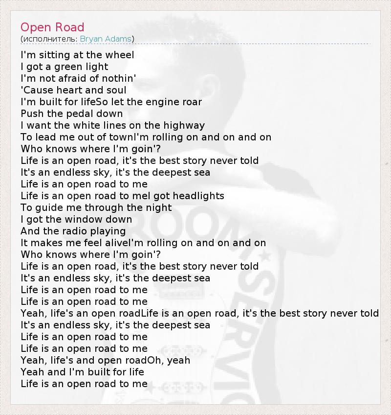 А как ты думаешь, о чем песня "Open Road" ?