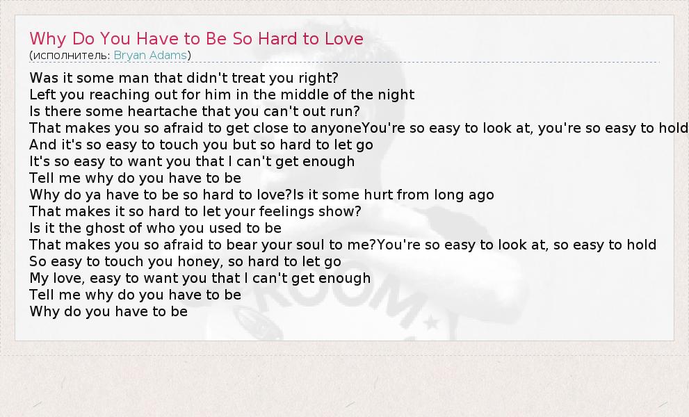 ГлавнаяИсполнителиBryan AdamsWhy Do You Have to Be So Hard to Love
