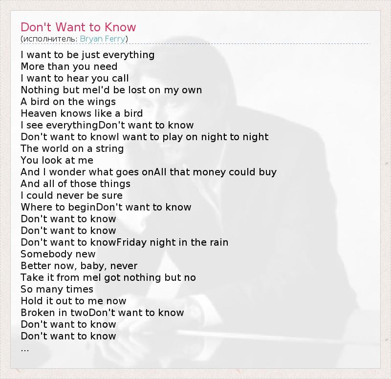 А как ты думаешь, о чем песня "Don't Want to Know" ?