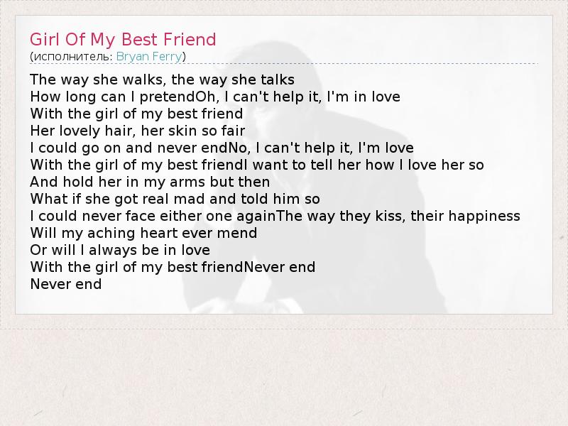 А как ты думаешь, о чем песня "Girl Of My Best Friend" ?