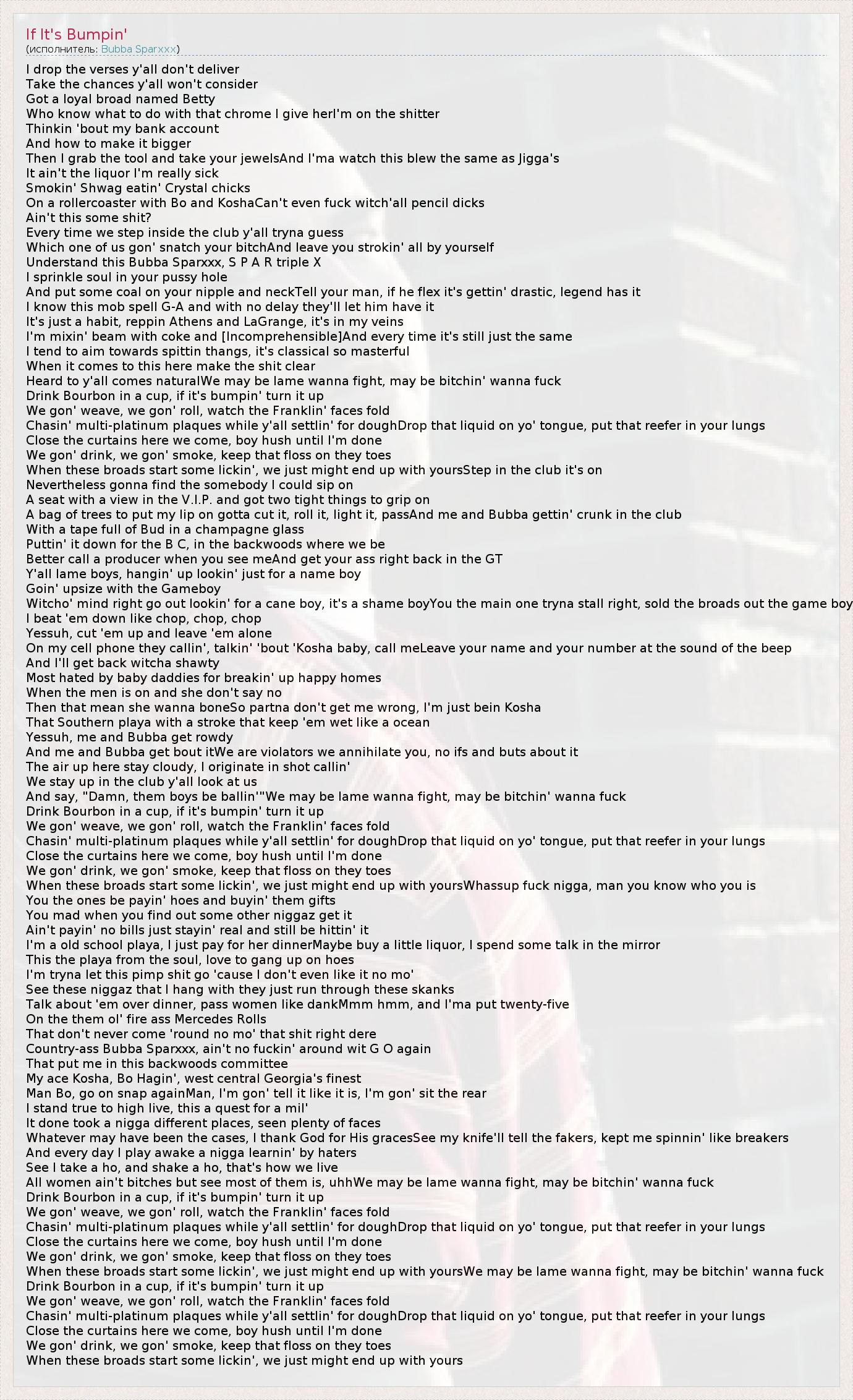 А как ты думаешь, о чем песня "If It's Bumpin'" ?
