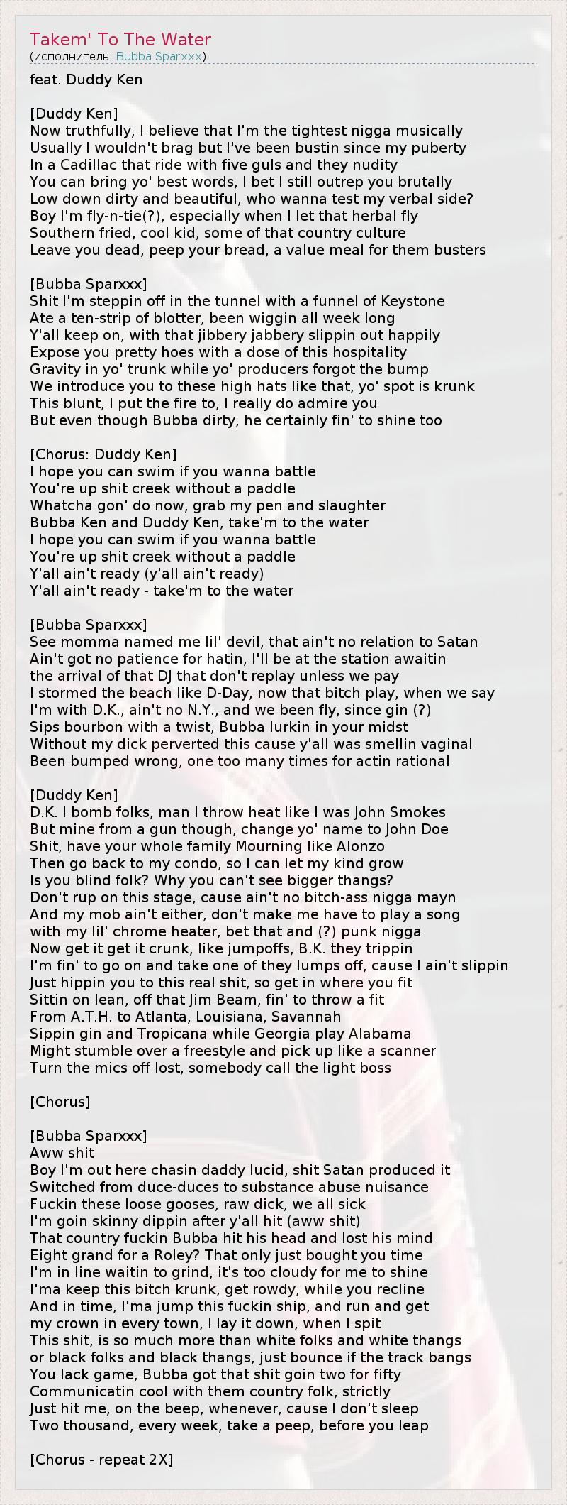 А как ты думаешь, о чем песня "Takem' To The Water" ?