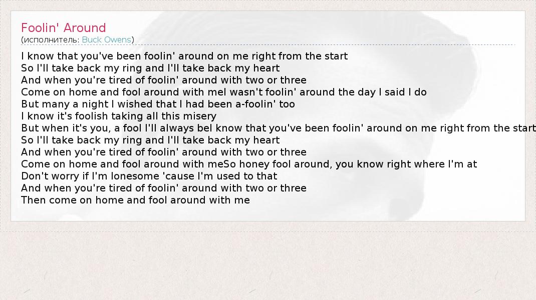А как ты думаешь, о чем песня "Foolin' Around" ?