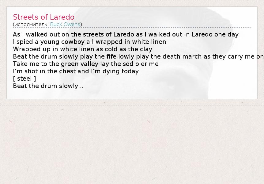 А как ты думаешь, о чем песня "Streets of Laredo" ?