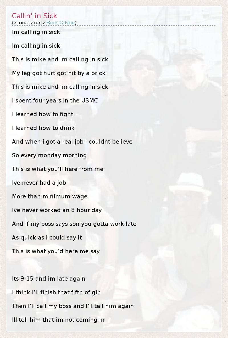 А как ты думаешь, о чем песня "Callin' in Sick" ?