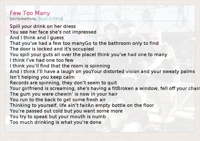 А как ты думаешь, о чем песня "Few Too Many" ?