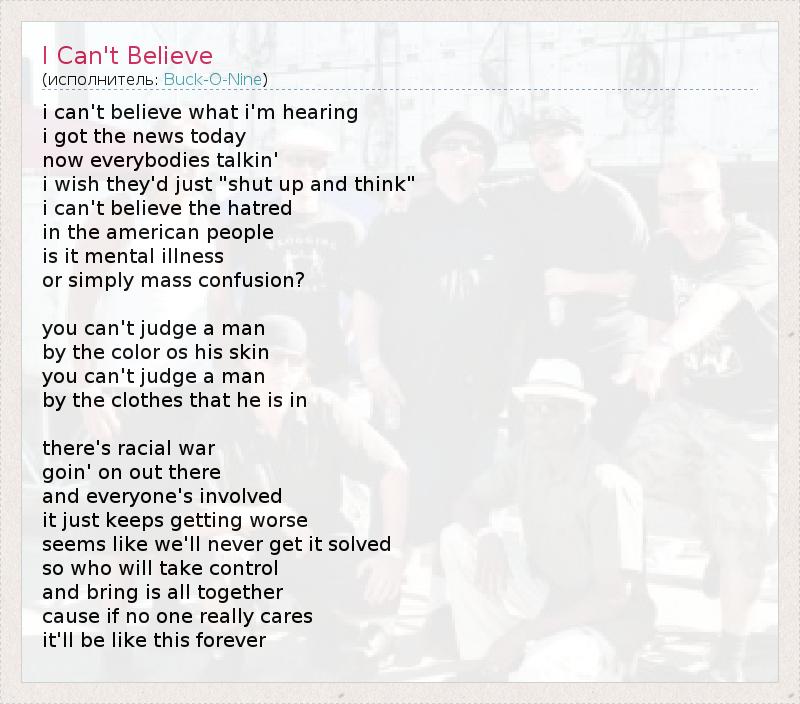 А как ты думаешь, о чем песня "I Can't Believe" ?