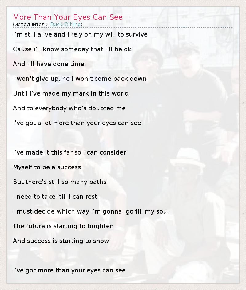 А как ты думаешь, о чем песня "More Than Your Eyes Can See" ?