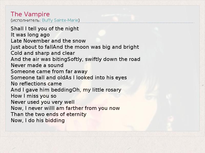 Это интересно:В немногочисленных биографических очерках о Баффи встречаются разночтения относительно чистокровности её происхождения и даже сообщается, будто она индианка лишь наполовину. Но даже в этом случае в ней все равно течёт кровь индейцев племени Кри. Известно, что она была приёмной дочерью у семейной пары, происходившей из племени Микмак, которые затем переехали в город Нэйпл, штат Мэн,... продолжение