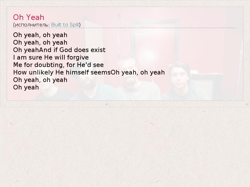 А как ты думаешь, о чем песня "Oh Yeah" ?