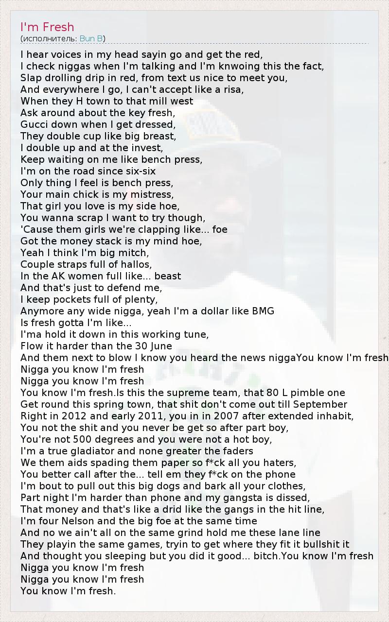 А как ты думаешь, о чем песня "I'm Fresh" ?