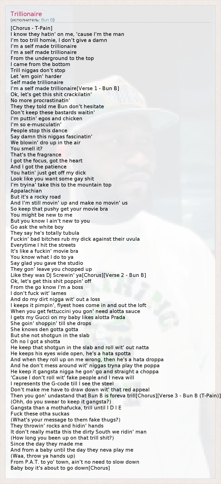 I'm a self made trillionaire[Verse 1 - Bun B]