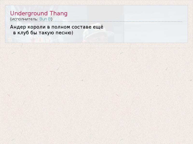 А как ты думаешь, о чем песня "Underground Thang" ?