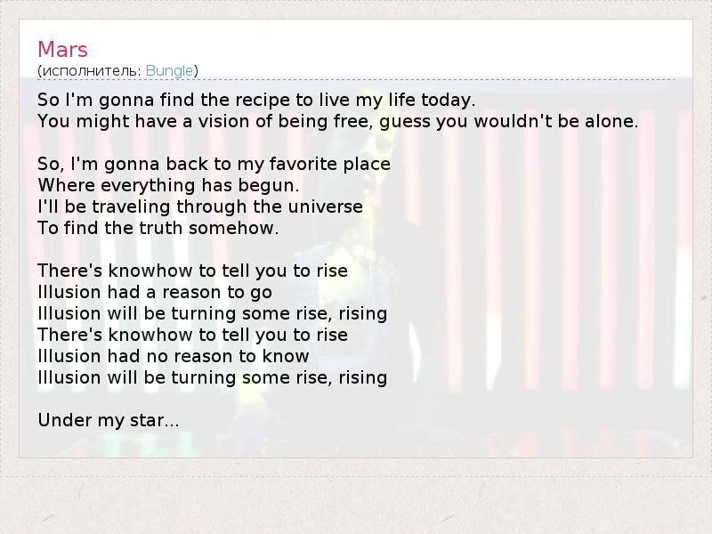 Так что я собираюсь найти рецепт, чтобы жить сегодня мою жизнь .