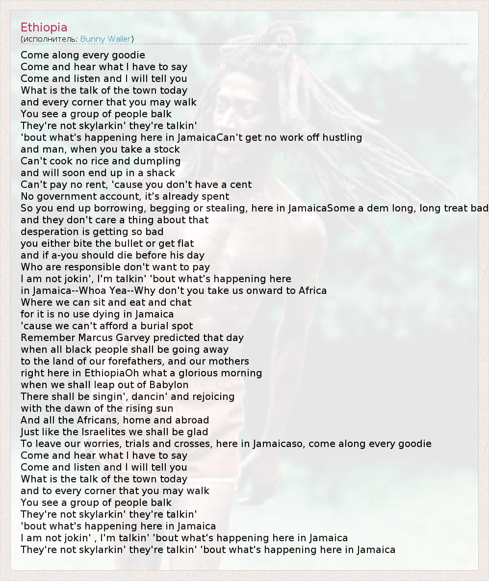 А как ты думаешь, о чем песня "Ethiopia" ?