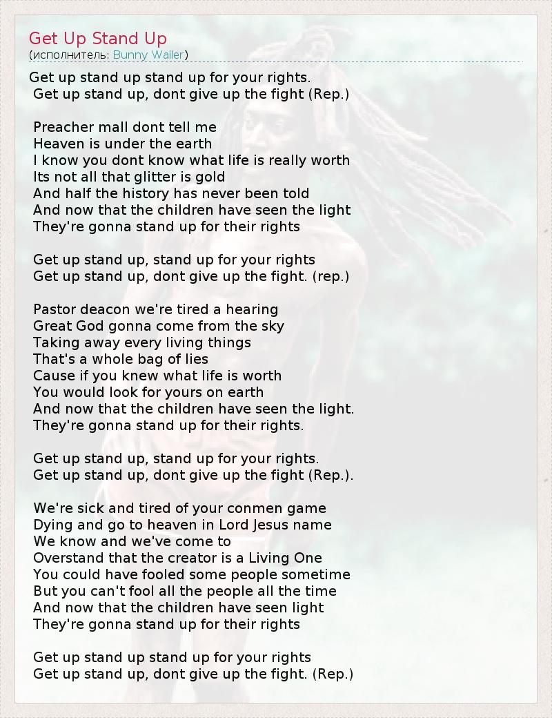 Get up stand up, dont give up the fight (Rep.)