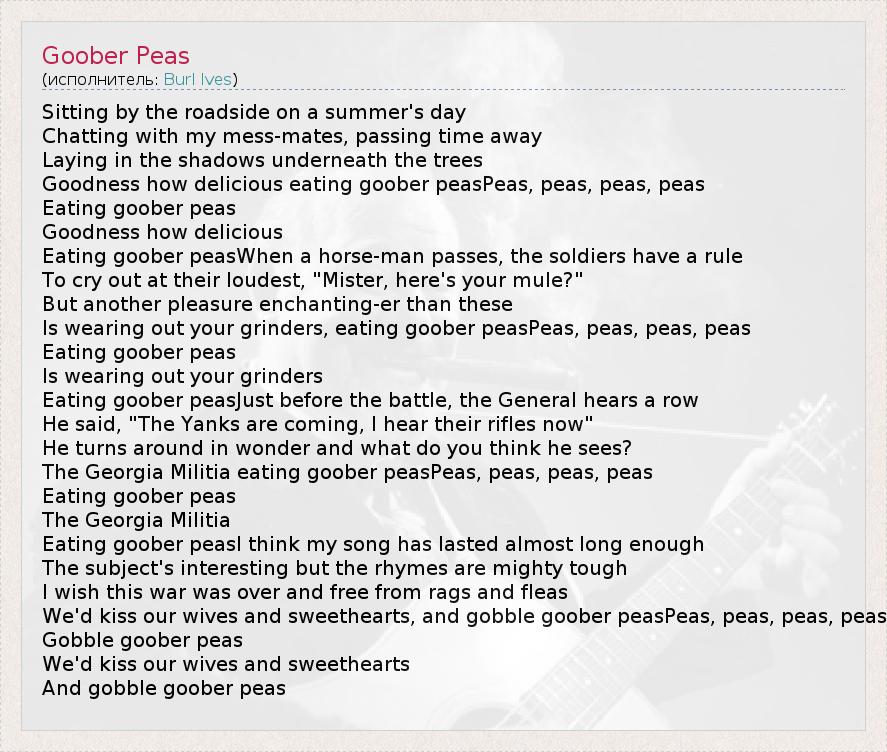 А как ты думаешь, о чем песня "Goober Peas" ?