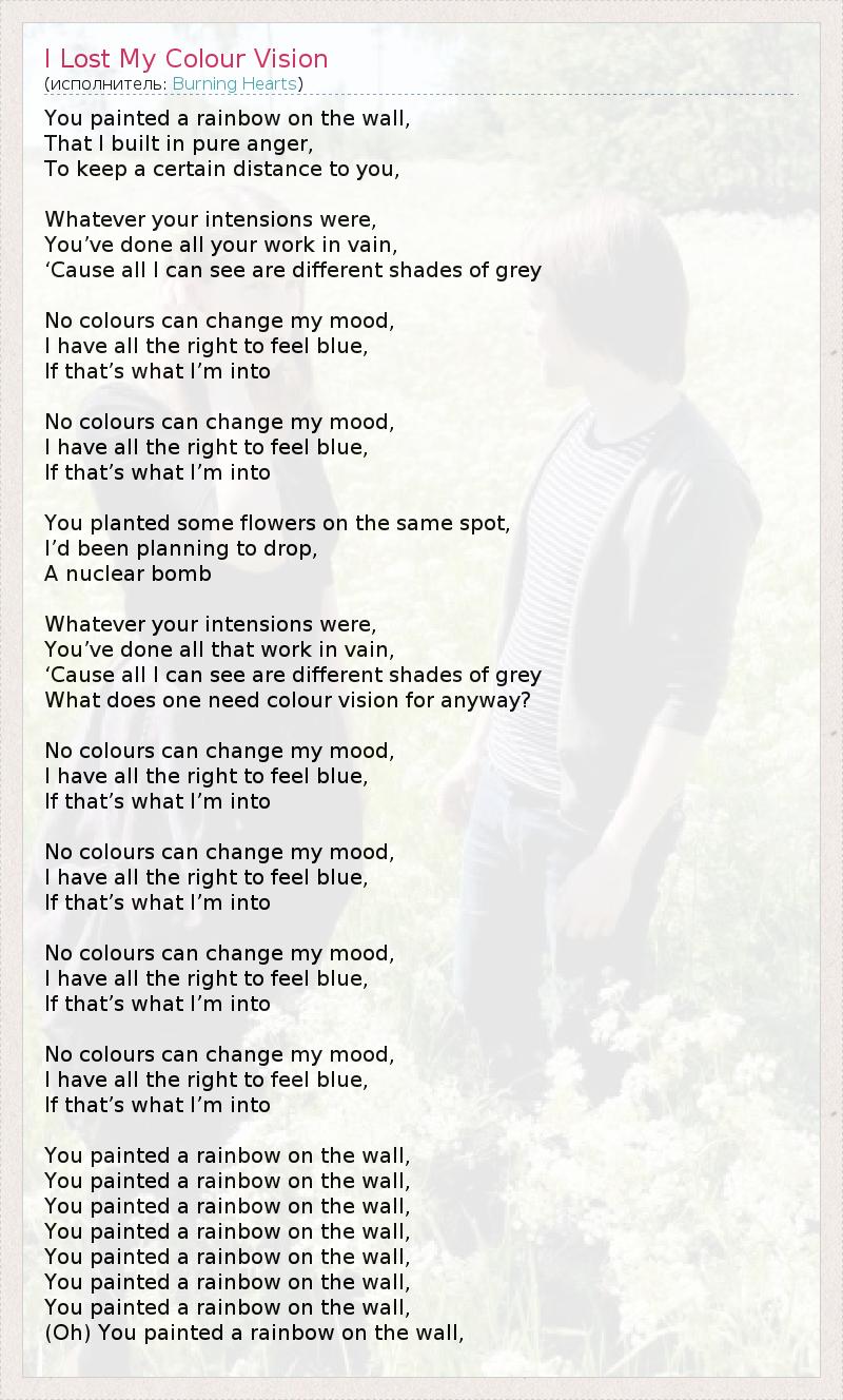 А как ты думаешь, о чем песня "I Lost My Colour Vision" ?