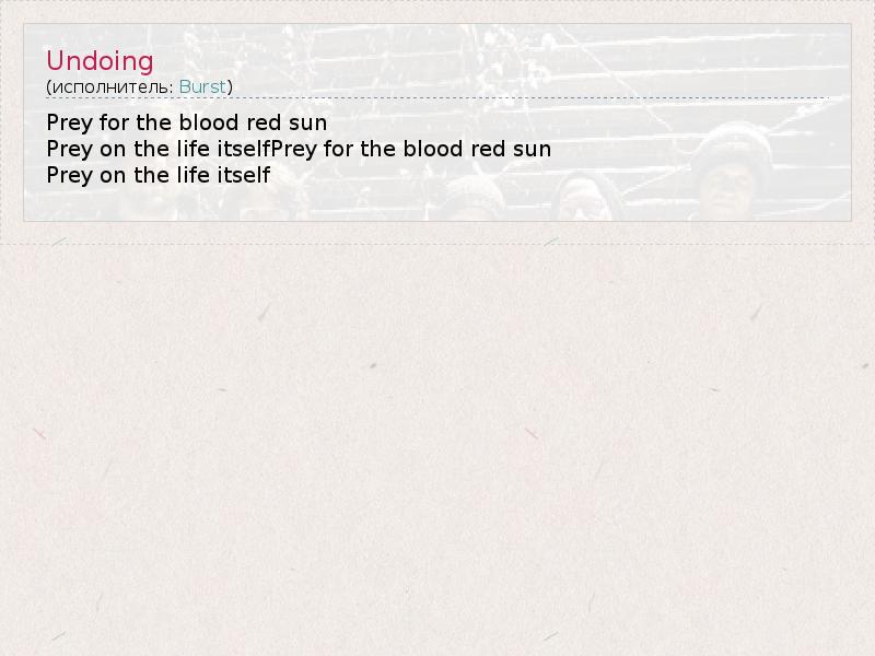 Prey for the blood red sun Prey on the life itselfPrey for the blood red sun Prey on the life itself