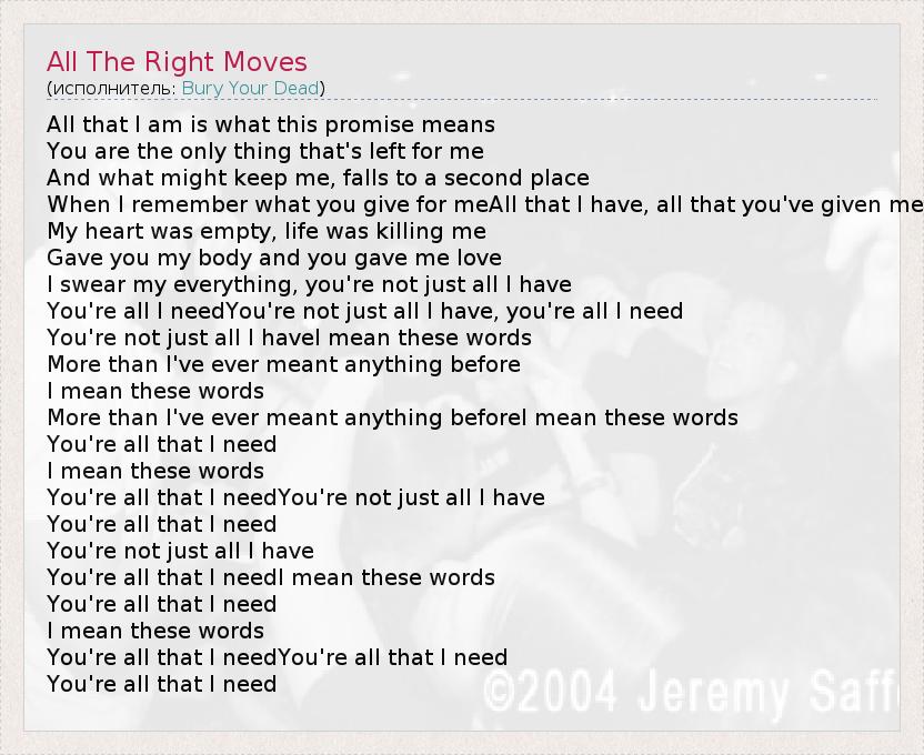 А как ты думаешь, о чем песня "All The Right Moves" ?