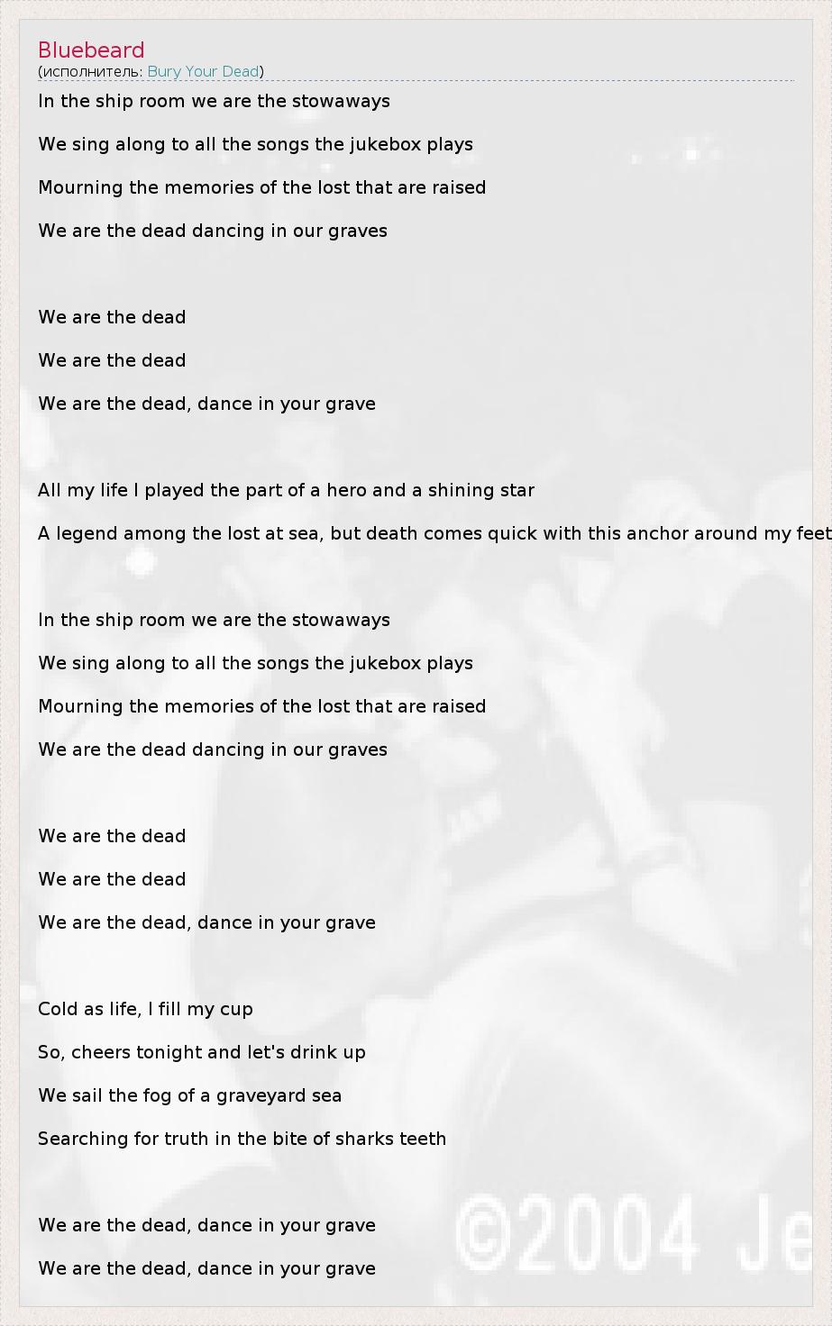 А как ты думаешь, о чем песня "Bluebeard" ?
